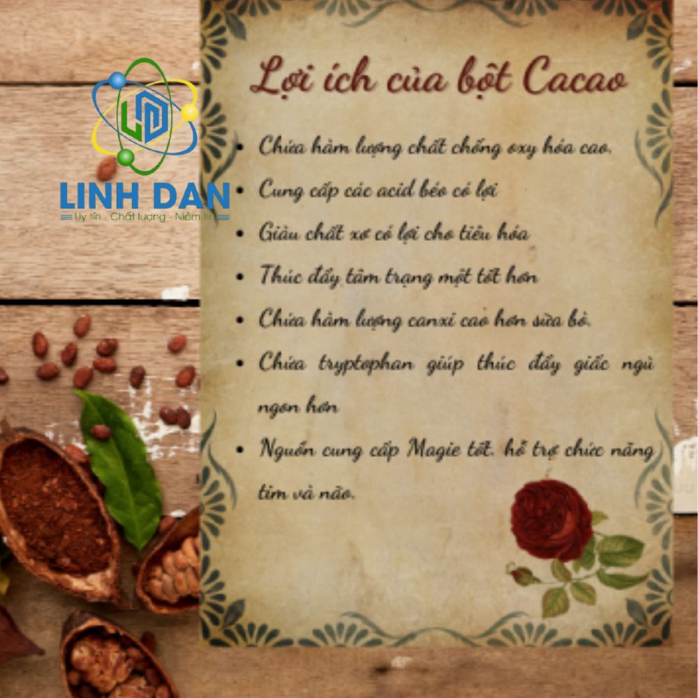 + Ngoài ra, cacao còn được biết đến vì chứa hàm lượng chất xơ hòa tan cao. Hai muỗng bột cacao chứa đến 3,6 g chất xơ