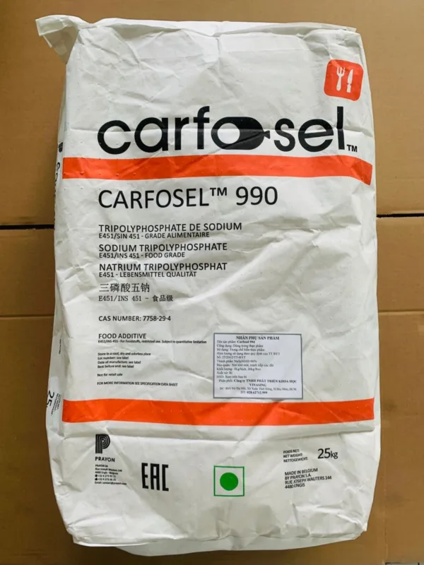 – Tên sản phẩm: polyphosphate food grade Carfosel 990 E451 – Chất tạo giòn dai trong chả