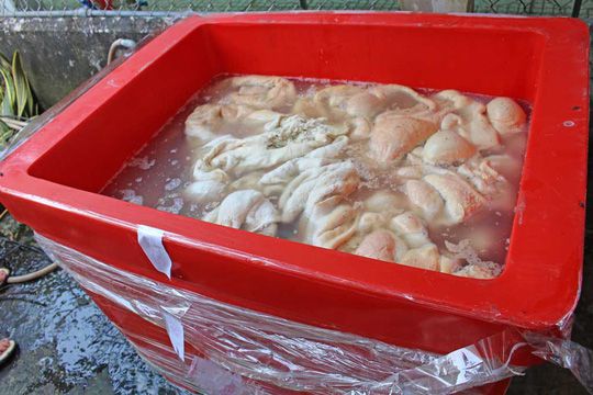 Dùng hóa chất để rửa lòng bò, không đăng ký đủ điều kiện về an toàn thực phẩm, không giấy đăng ký kinh doanh một cơ sở ở Long An bị phạt 36 triệu đồng.