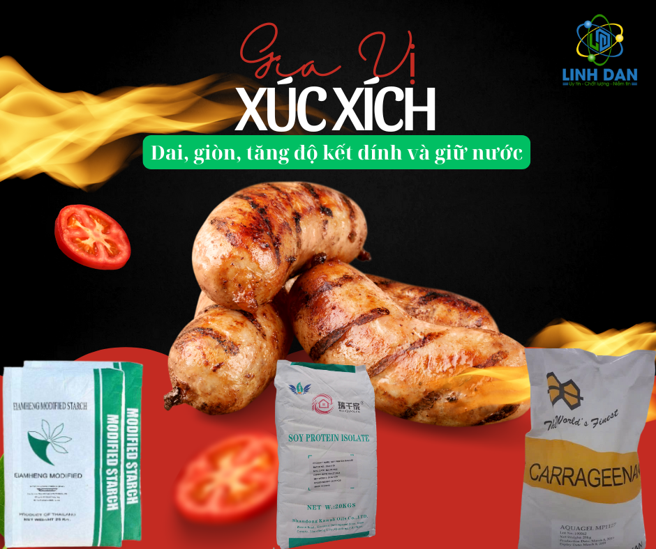 Trong bài viết này, Công ty Linh Đan – đơn vị chuyên phân phối phụ gia thực phẩm trên toàn quốc, sẽ cung cấp cái nhìn tổng quan và chuyên sâu về các loại gia vị, phụ gia thiết yếu trong sản xuất xúc xích. Nội dung được tổng hợp từ kinh nghiệm thực tiễn và ứng dụng công nghệ hiện đại nhằm hỗ trợ các nhà sản xuất, cơ sở kinh doanh và người tiêu dùng hiểu rõ hơn về các yếu tố tạo nên xúc xích chất lượng cao, đồng đều và bền vững.