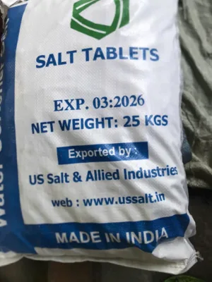 Sản phẩm Muối viên NaCl tinh khiết được sản xuất bởi US Salt & Allied Industries tại Ấn Độ, với tiêu chuẩn chất lượng quốc tế. Muối viên này đóng gói trong bao 25kg, là lựa chọn lý tưởng cho các hệ thống lọc nước công nghiệp, nhà máy, khu dân cư và các ứng dụng khác yêu cầu độ tinh khiết cao.