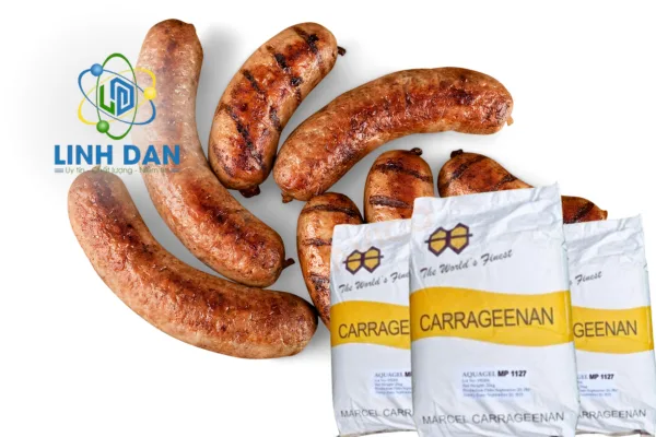 Tăng khả năng giữ nước và kết dính: Carrageenan giúp giữ nước, tăng năng suất sản xuất, đồng thời tạo độ giòn, dẻo và dai tự nhiên cho các sản phẩm như xúc xích, giò chả, chả cá, sữa chua hoặc kem.