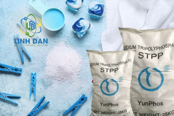 STPP, hay natri tripolyphosphate, là hợp chất có công thức hóa học Na₅P₃O₁₀, tồn tại ở dạng bột trắng, tan hoàn toàn trong nước, không mùi và có tính kiềm nhẹ. Với khả năng tạo phức mạnh mẽ với ion kim loại như Ca²⁺ và Mg²⁺, STPP giúp làm mềm nước, ngăn cặn vôi bám và tăng khả năng hoạt động của chất tẩy rửa. Khi được sử dụng trong sản xuất bột giặt, nó không chỉ giúp tăng độ hòa tan, cải thiện khả năng tạo bọt, mà còn làm quần áo mềm hơn và giữ màu tốt hơn sau nhiều lần giặt.